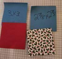 Then to decorate it I cut cardstock at 3 by 3, then cut 4 at 3 by 2 7/8", cut 4 at 3 by 3 /4 and cut 4 at 2 3/4 by 1 1/4.