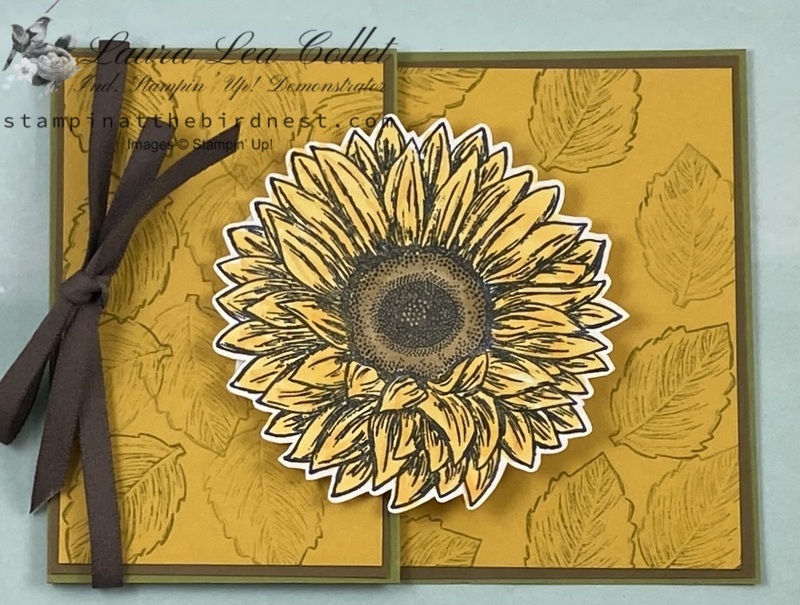 Stamp sentiment. in center of sunflower using Old Olive ink.