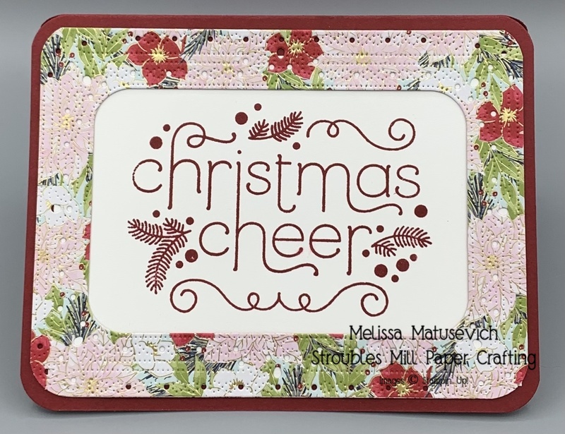his ancient stamp set is one I love, love, LOVE. I will continue to use it no matter how out of date it becomes. It must already be ten or eleven years old. For this card I paired it with Traditions of Christmas patterned paper and Sentimental Framing. My corner round punch also is retired, but I still use it often.