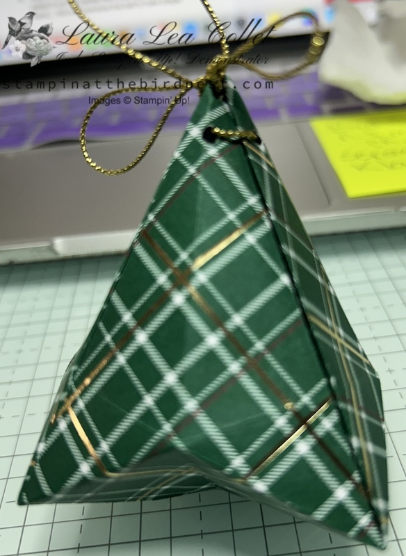 Cup the paper in the palm of one hand and gently press in on the center with the fingers of your other hand... this will convince the bell to take shape. Tack with glue dot to hold two side, then opposite 2 sides