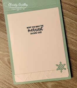 Add a Basic White cardstock inside panel to write your message. Stamp the sentiment from the One Of The Kind stamp set in Memento Black ink to the inside panel. Add a strip of embossed Basic White cardstock to the inside and back of the card to pull the theme through. I used glue (with small dots) to add a die cut snowflake to the bottom right of the inside panel overlapping the embossed strip.