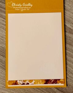 Add a Basic White cardstock inside panel to write your message. Glue a strip of created Designer Series Paper (like the front panel) to the inside panel and back of the card to pull the theme through.
