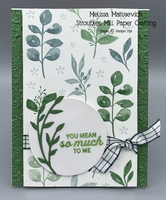Cut Garden Green cardstock 4 1/4" x 5 1/2" and emboss it.
