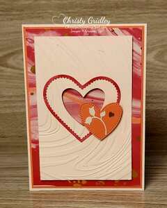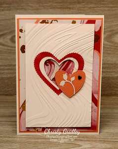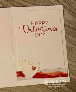Basic White cs panel - 4 1/4" x 2 3/4" with a heart die cut from the center with the Hearts of Elegance dies and then dry embossed with the So Swirly embossing folder.