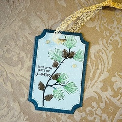 Die cut Basic White small oval using Framed Scenes Die and stamp floral image with Stamped off Basic Beige ink then stamp sentiment on top using Misty Moonlight Ink. Adhere to a larger piece of Misty Moonlight cardstock die cut with the larger oval Framed Scenes Die.