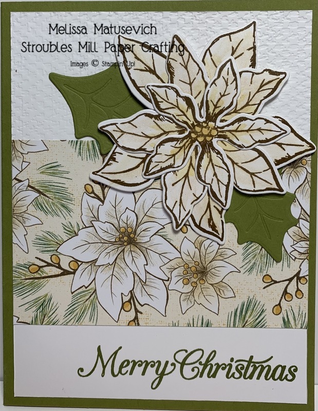 P oinsettia Place patterned paper is the backdrop for the beautiful poinsettia flower colored with So Saffron ink and painted with Wink of Stella.