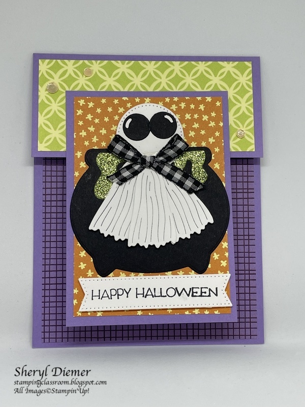 his fun fold has a cute ghost to say hi to all potential trick or treaters!