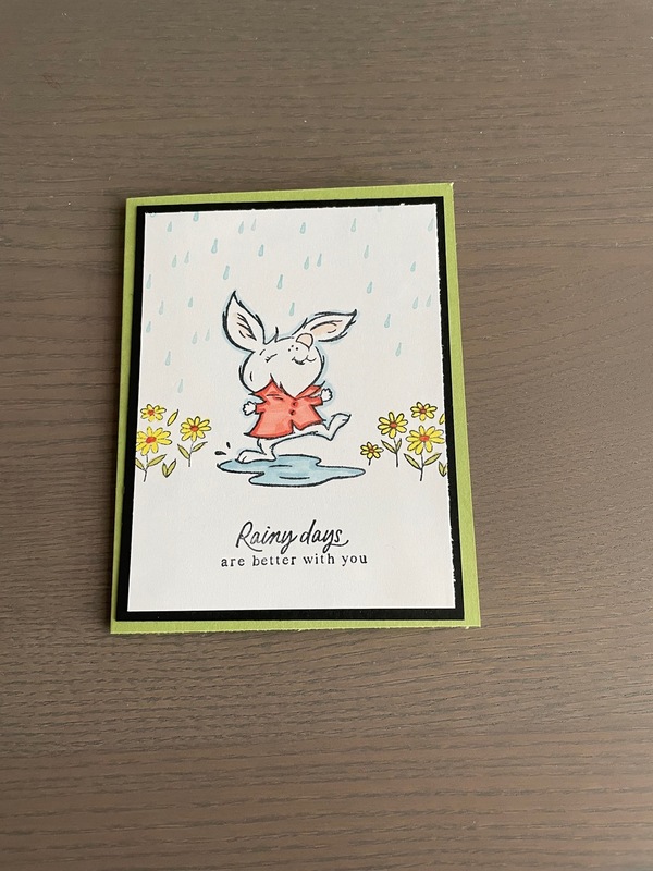 M ade up this adorable card using the Rain or Shine Stamp set from Stampin' Up!. I love this adorable rabbit. He just looks so happy, playing in the rain