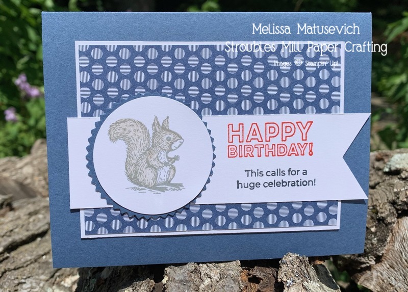Stamp the squirrel on Whisper White cardstock and punch with a circle punch or use a circle die. I used two stamps for the squirrel and two different inks: