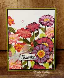 Flowering Zinnias DSP Thanks Card 1by: Christy Gridley
